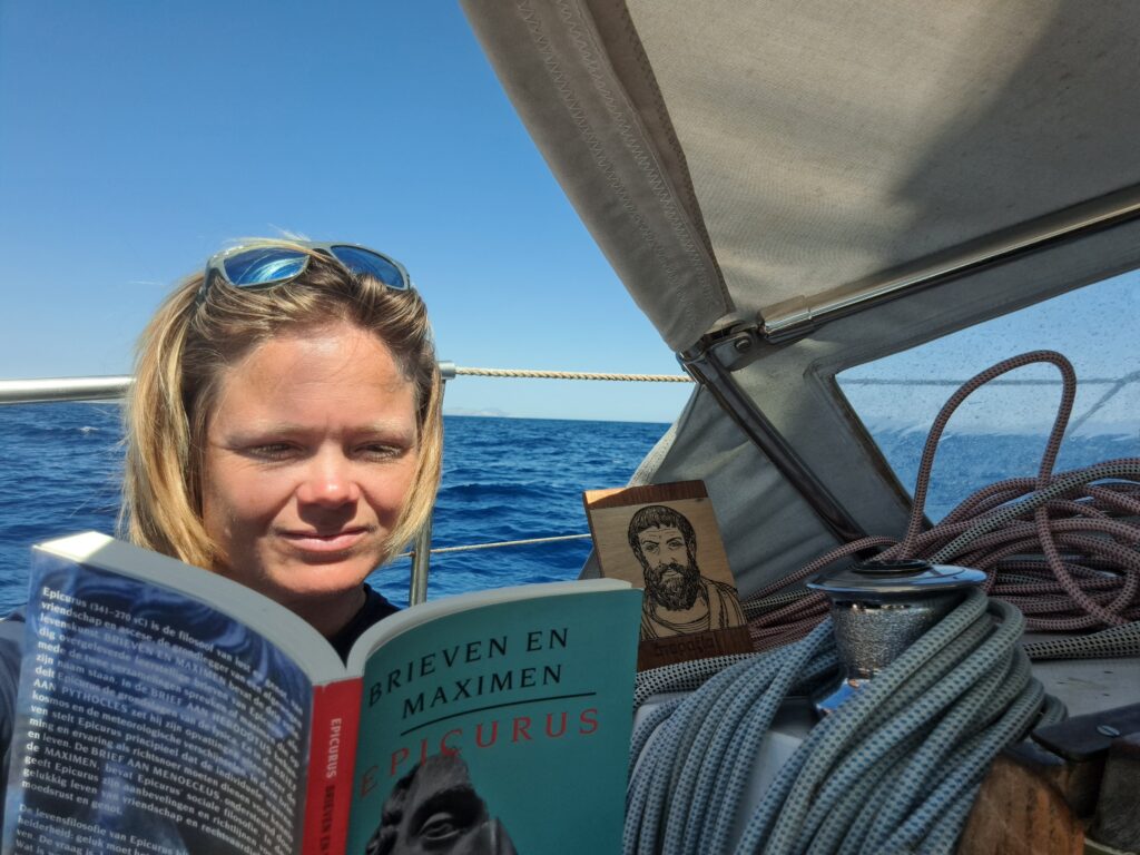 Het heeft me tien jaar gekost, maar eindelijk laat ik het anker van mijn zeilboot ‘Ataraxía’ zakken in het zand van Samos. Een kleine ode aan Epicurus.