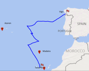 Ik lig verwaaid in de haven van Ikaria als de telefoon gaat: of ik tijd heb om dit voorjaar een boot over te varen van Tenerife naar Galicië? Het gaat om zeiljacht ‘Zeezot’, een prachtige Koopmans 40 in aluminium. Ik ken het schip en de eigenaren van een afstand, via facebook, omdat we zo’n vijf jaar geleden ongeveer tegelijk uit Nederland vertrokken. Tussen vertrek- en eindhaven ligt ongeveer 1000 zeemijl aan open zee, maar met de verwachte windrichting in dit seizoen (pal tegen) is een tocht van een week of twee te verwachten. Ik werp een blik op mijn agenda: vanaf eind juni heb ik 5 weken open staan. Voordat ik er te lang over na kan denken heb ik ingestemd en de eigenaar Marcel -die tot de snelle beslissers hoort- ook.
