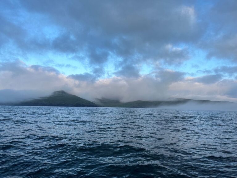 Cherokee ligt aan de kade in Stromness, een vissersplaatsje op de Orkney-eilanden. We zijn aan boord met 3 bemanningsleden en 5 gasten uit Schotland, Engeland en Nederland. We maken ons op voor de oversteek naar de Faröereilanden, die als een paar gemorste kruimels tussen Schotland en IJsland in het uitgestrekte blauw liggen. De weerberichten spreken van een occlusiefront dat vanuit het zuidwesten overtrekt. De meningen zijn tussen de verschillende meteostations verdeeld over het waar en wanneer precies, maar we doen er goed aan om niet te lang te wachten met vertrekken. Het kon anders wel eens onplezierig tochtje worden.