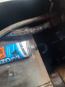 flexibele tape smeer ik de boel provisorisch dicht. Als de boel droog is vaar