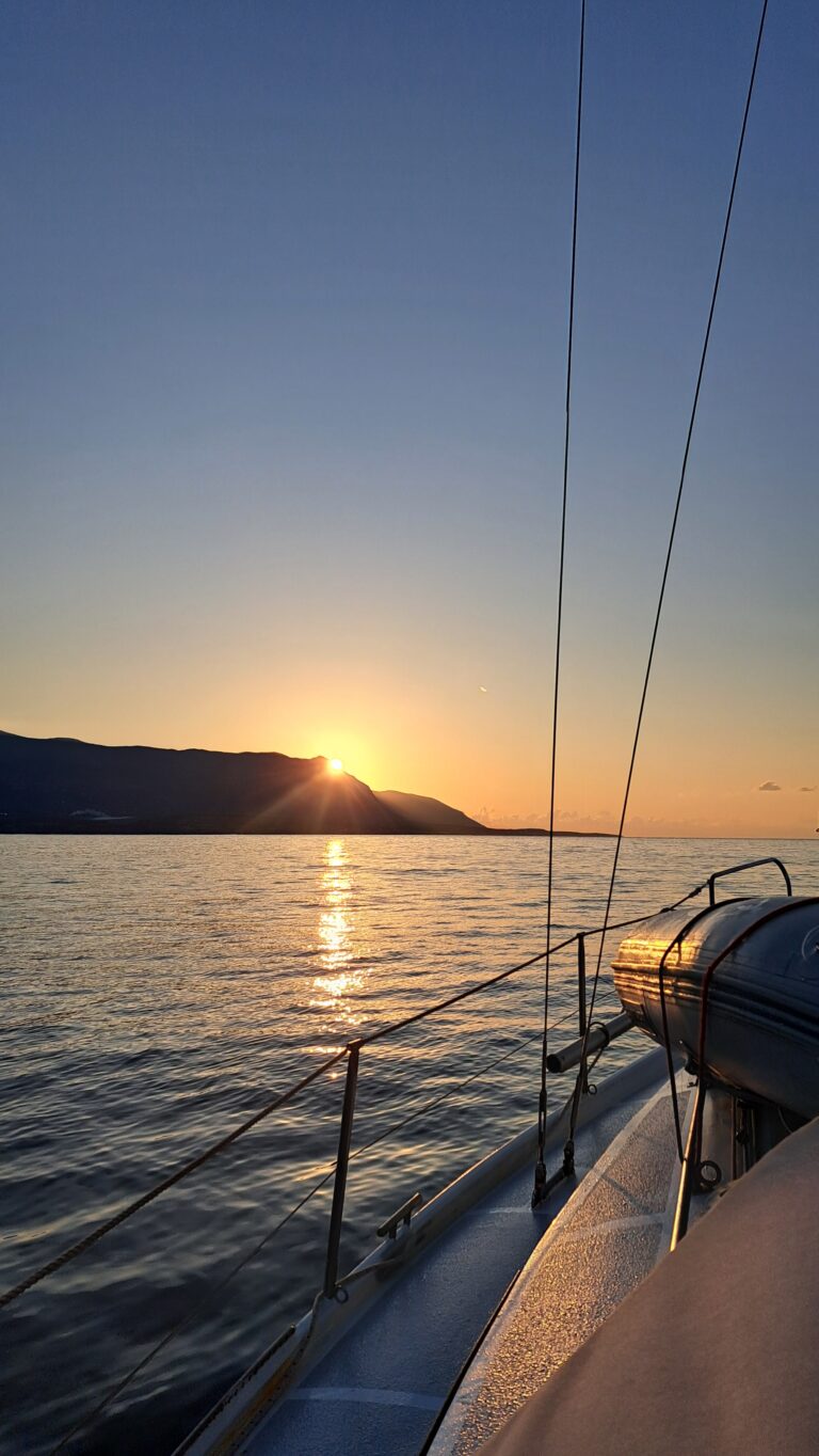 De volgende ochtend staat de wekker voor zonsopkomst. Ik wil voor tien uur de kaap ronden, twaalf mijl ten oosten van ons, dus moeten we rond zes uur vertrekken. Ik voel me net Odysseus als ik, terwijl de rozevingerige dageraad haar taak volbrengt, de witte zeilen hijs en het anker licht.