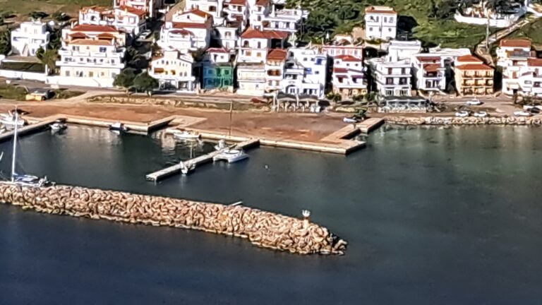 Ik zou hier de hele dag wel kunnen rondzwerven, om dat morgen nog eens te herhalen, maar het wordt tijd om te gaan. Er komt een kort weervenster aan van zuidoostenwind, die al snel draait naar een noordooster die voorlopig niet vertrekt. Even na het middaguur vertrekken er dus twee boten uit de haven: Waldemar heeft het weerbericht ook bekeken, en gaat op weg naar Spetses. Onze wegen scheiden hier, want mijn koers loopt verder naar het noorden, naar de baai van Vivari.